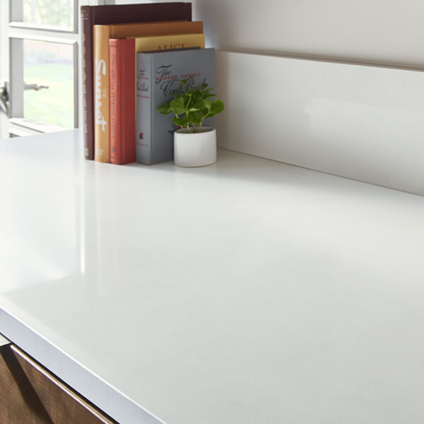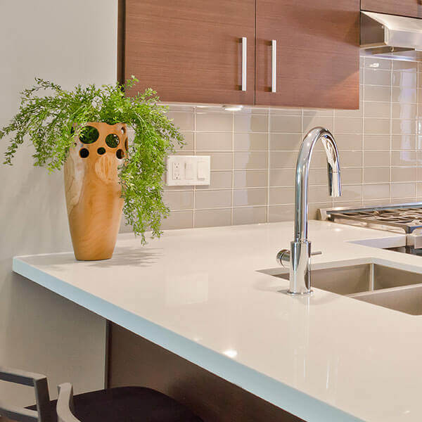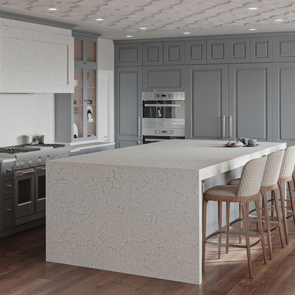 Go for a clean look with the Arctic White Quartz Collection. It has a solid white color with no patterns or veins. This slab is great for countertops, accent walls, bathrooms, floors, and more for a timeless look. It’s easy to clean and stain-resistant, making it the perfect choice for your home.